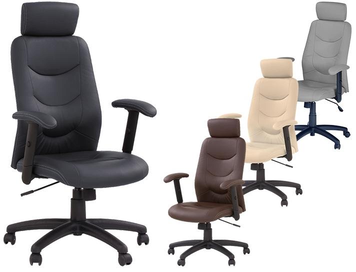 Tapiteria este din piele ecologica de calitate, bratele tapitate sunt reglabile pe inaltime, baza sub forma de stea este realizata din PP mata.